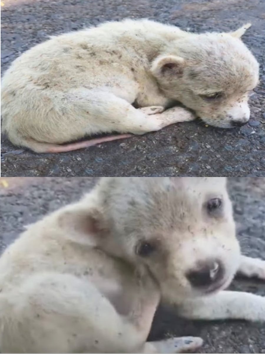 Flea-Infested and Heartbroken, This Puppy Lay on the Road Until Help Arrived