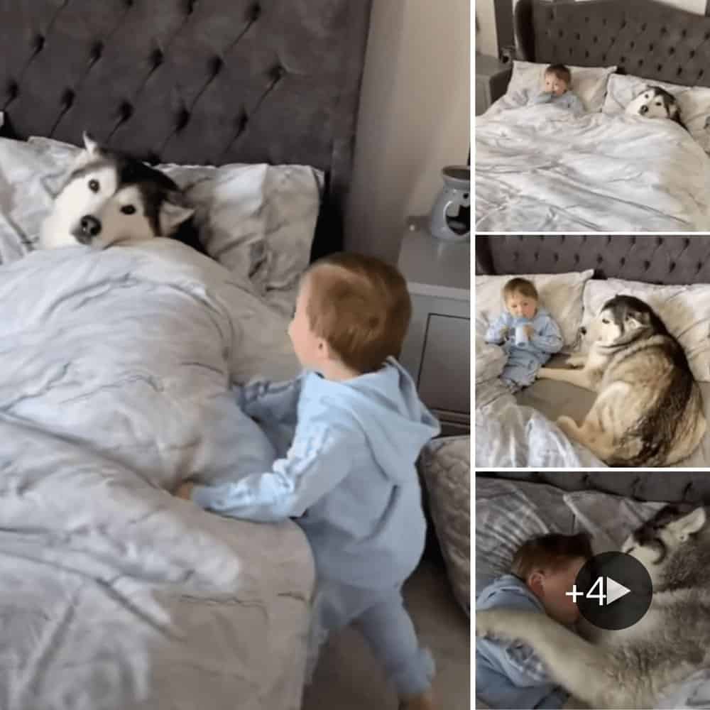 Heartwarming Moment: Husky Refuses to Leave Toddler’s Bed