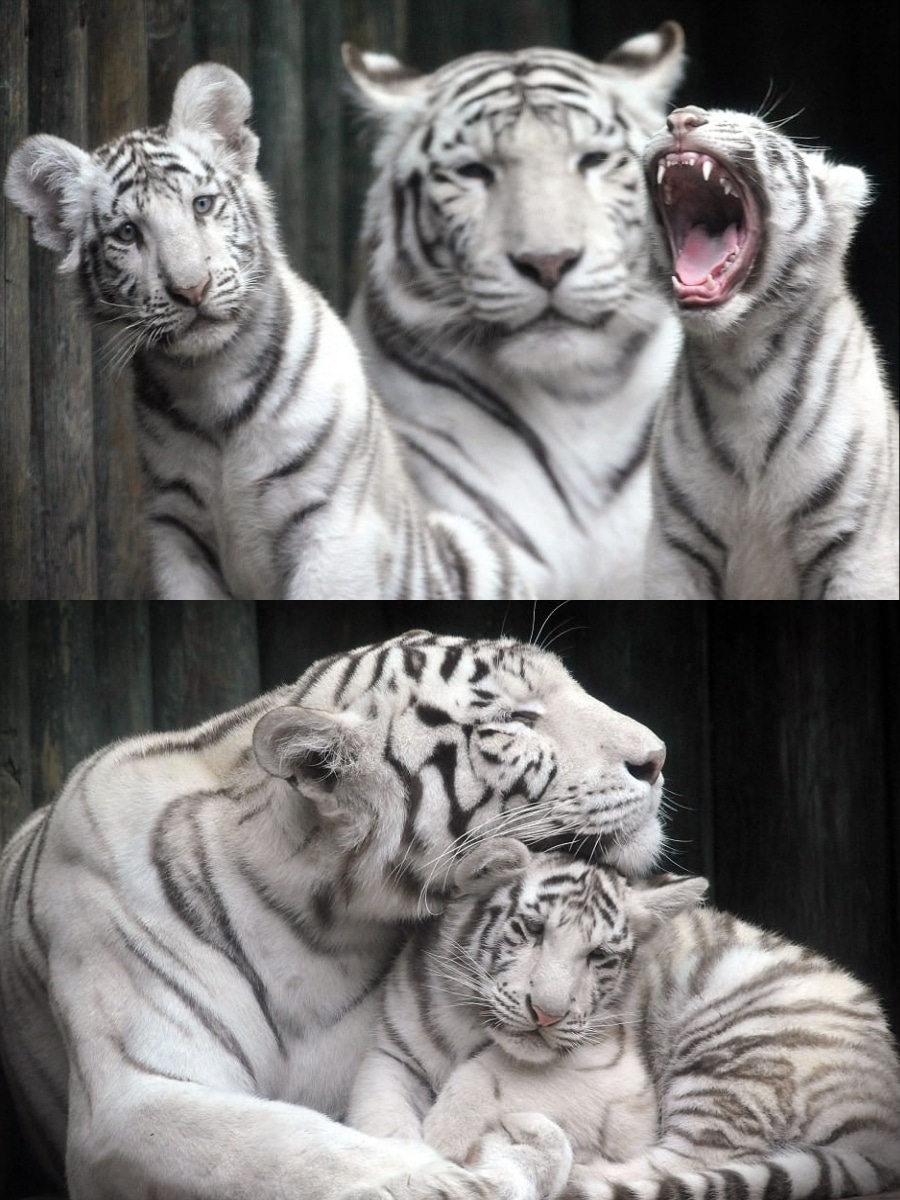 Heartwarming Moments: A Family of White Tigers Bonding in Liberec Zoo