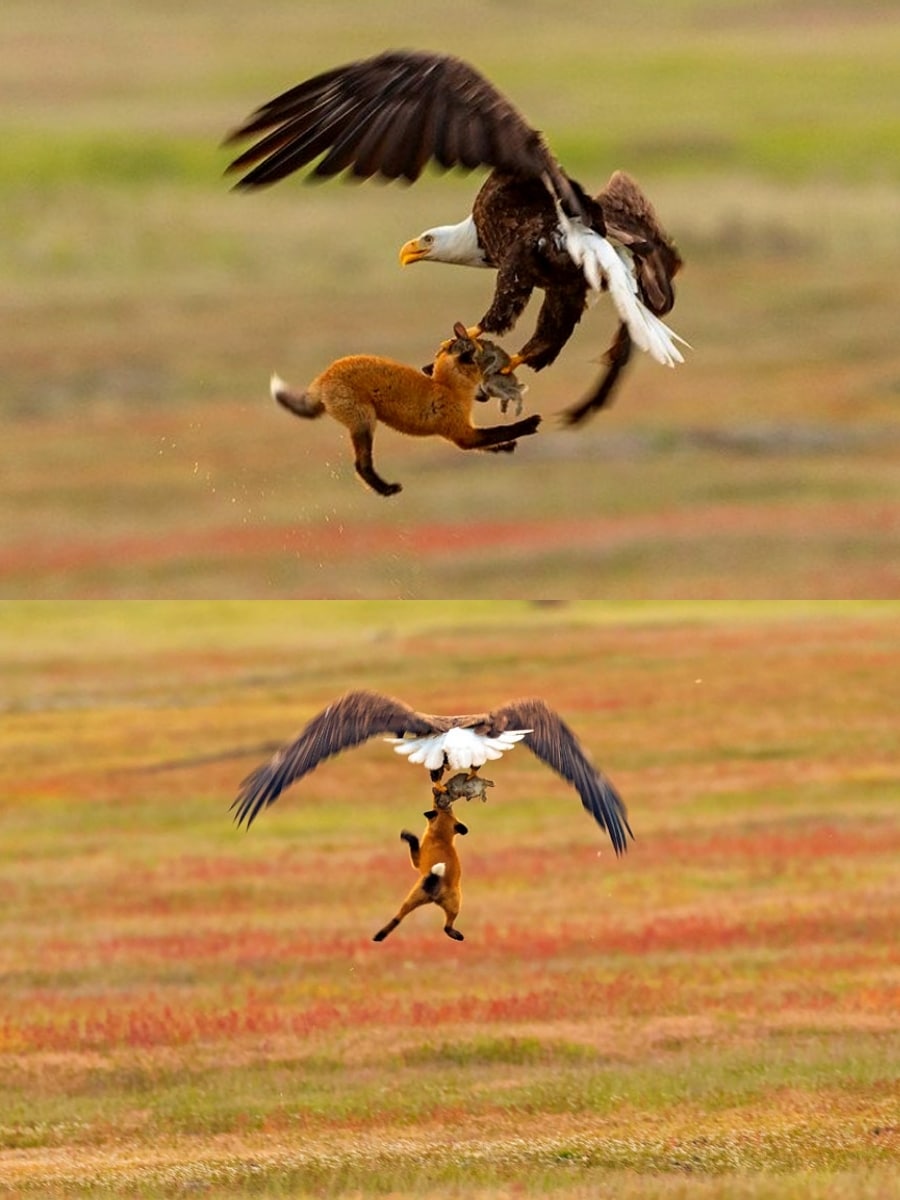 [Video] Epic Aerial Showdown: Eagle vs. Fox in a Race for Dinner