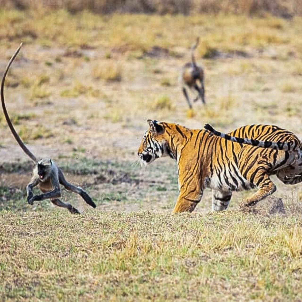 A Close Call: Langur Monkeys Encounter a Tiger at Bandhavgarh