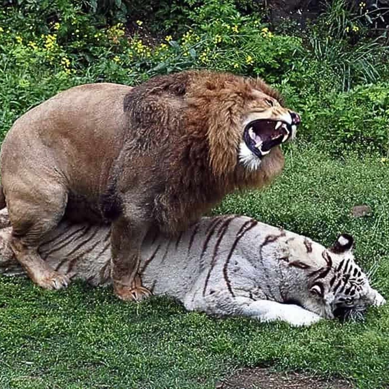 Jungle Showdown: A White Tiger vs. A Male Lion