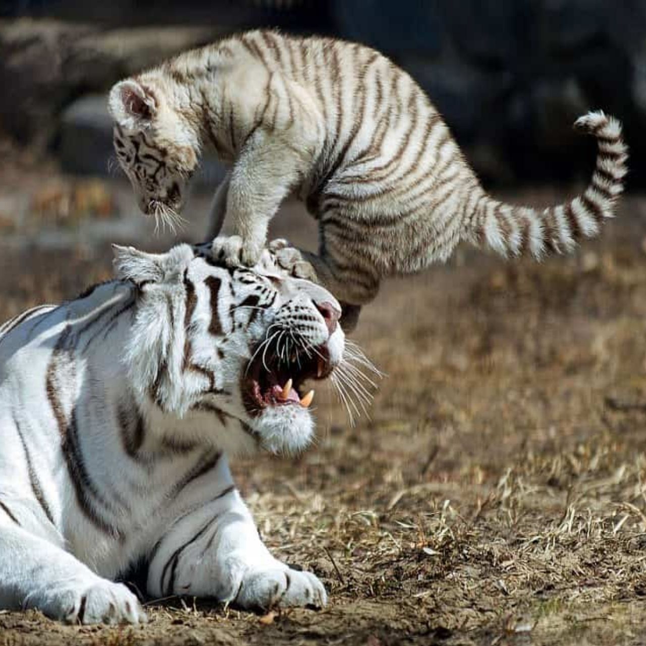 Watch This Adorable White Tiger Cub Playfully Bother Its Mother at a Russian Zoo