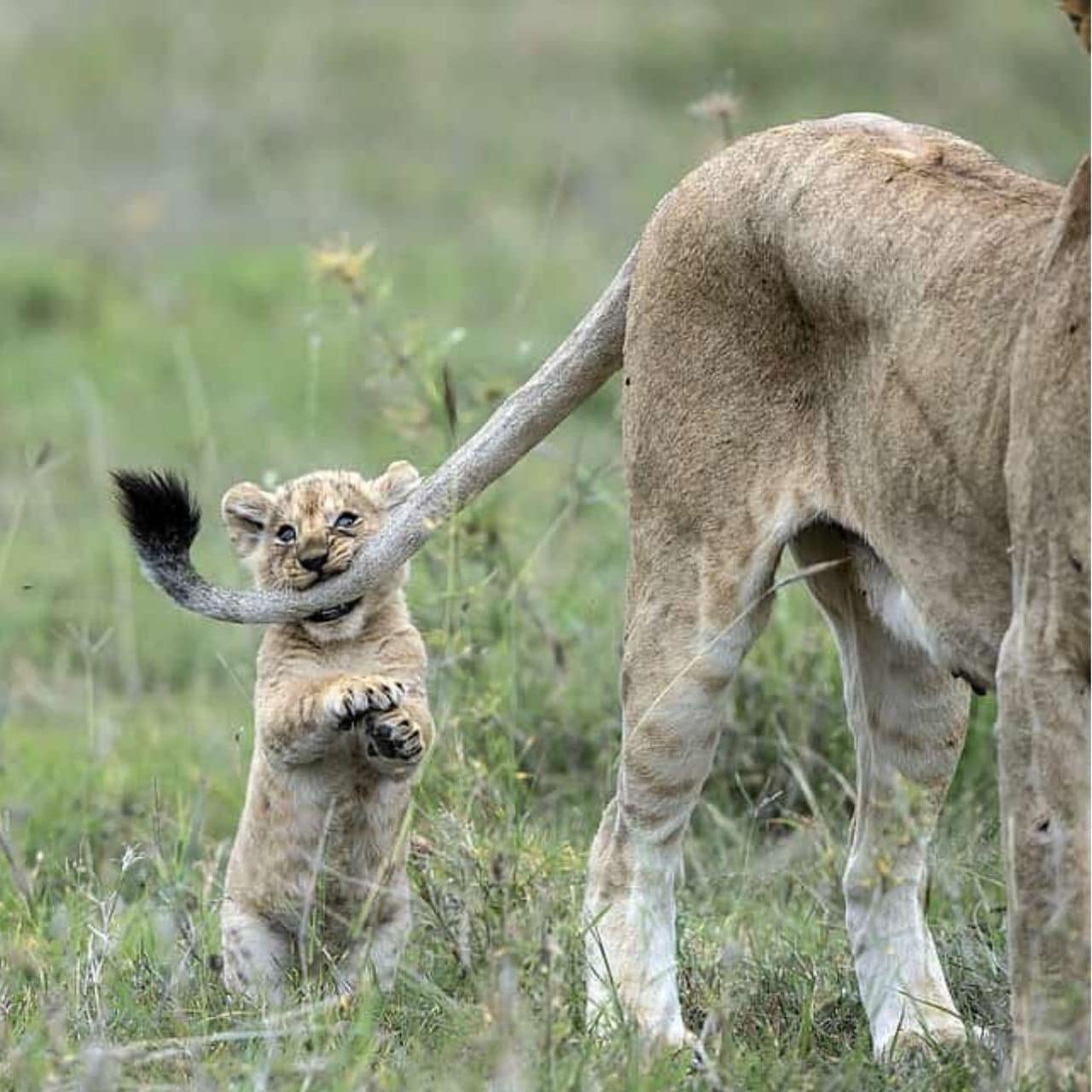 Adorable Lion Cub Captured in Playful Antics with Its Mother