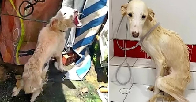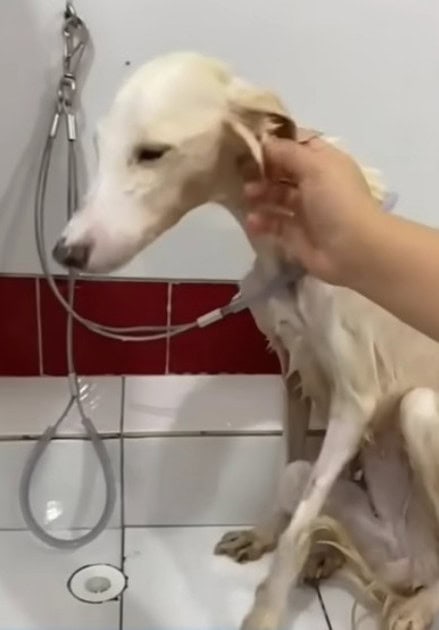 With the assistance of local police, members of eBay Bel Ercum, a local animal rescue organization that cares for nearly 30 dogs and cats, stepped in to rescue the emaciated dog. After enduring years of neglect, she was given her first thorough health check and bath.