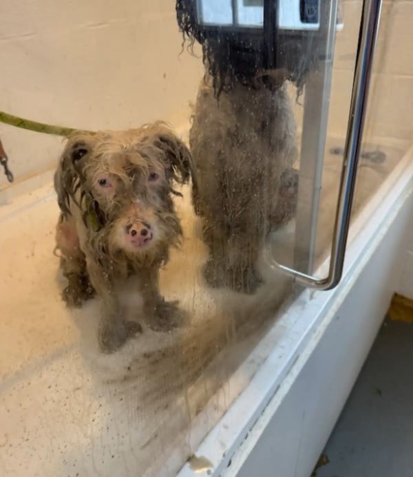 Rescuers gently placed Brandy into a warm bath. As the layers of dirt began to dissolve, the water turned murky. Slowly, a brilliant white coat was revealed beneath what had appeared to be dull fur.
