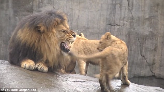 Despite the occasional need for space, the affectionate bond between Zawadi and his cubs is evident, providing a heartwarming glimpse into the familial dynamics of these majestic animals at the Oregon Zoo.