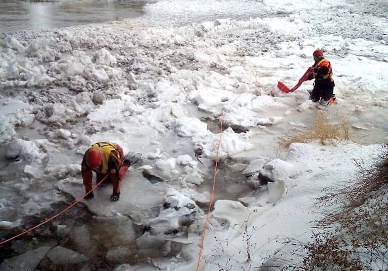 A creature struggling in the icy Pärnu River caught their attention – a dog, it seemed, fighting against the brutal cold.