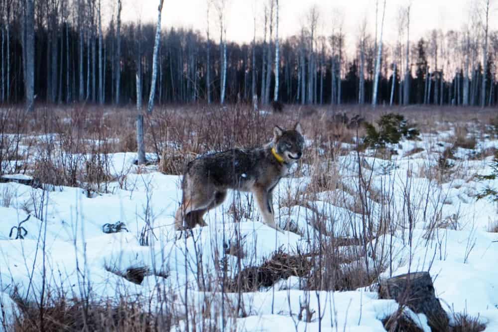 After a full recovery, it was time for the wolf to return to the wild. Equipped with a GPS collar by the Estonian National Environmental Agency to monitor its movements, the wolf bolted out of the cage with lightning speed, disappearing into the white field.